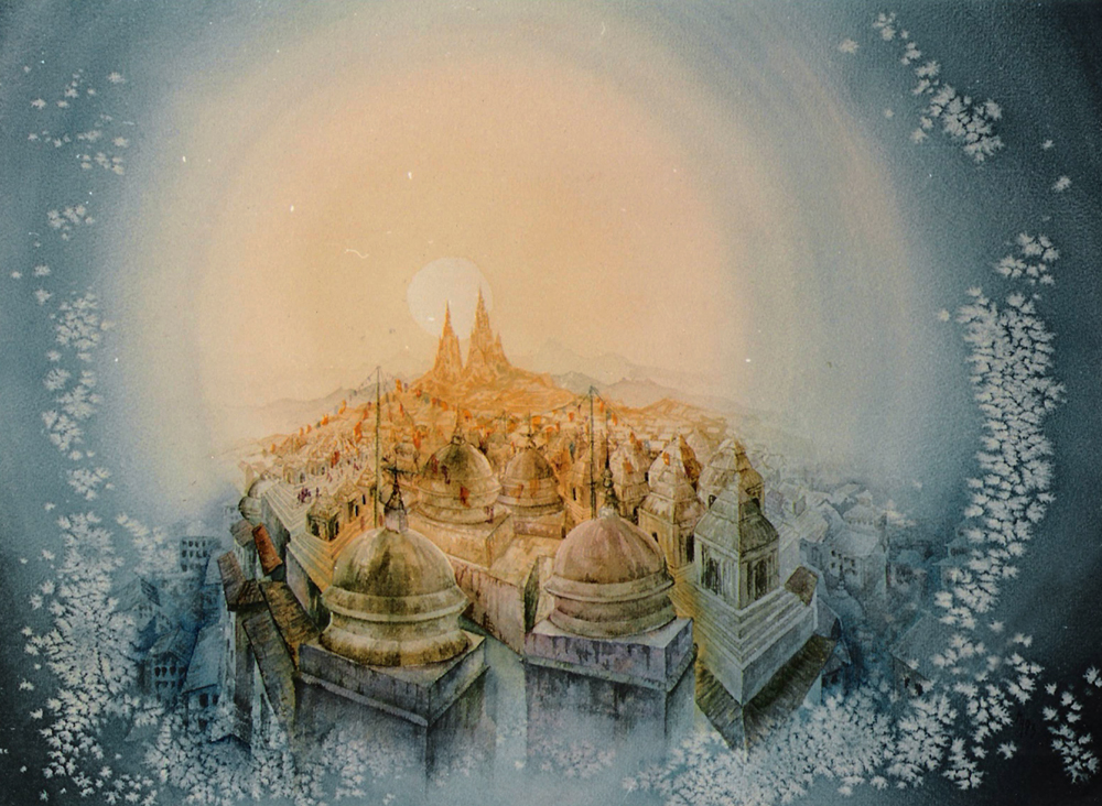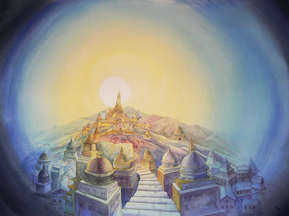 Traumvisionen, die an den alten tibetischen Mythos von „Shamballa“, dem verborgenen Königreich in Zentralasien, oder auch an die Endzeitvision des sog. „Himmlischen Jerusalems“ aus der biblischen Offenbarung des Evangelisten Johannes erinnerten.